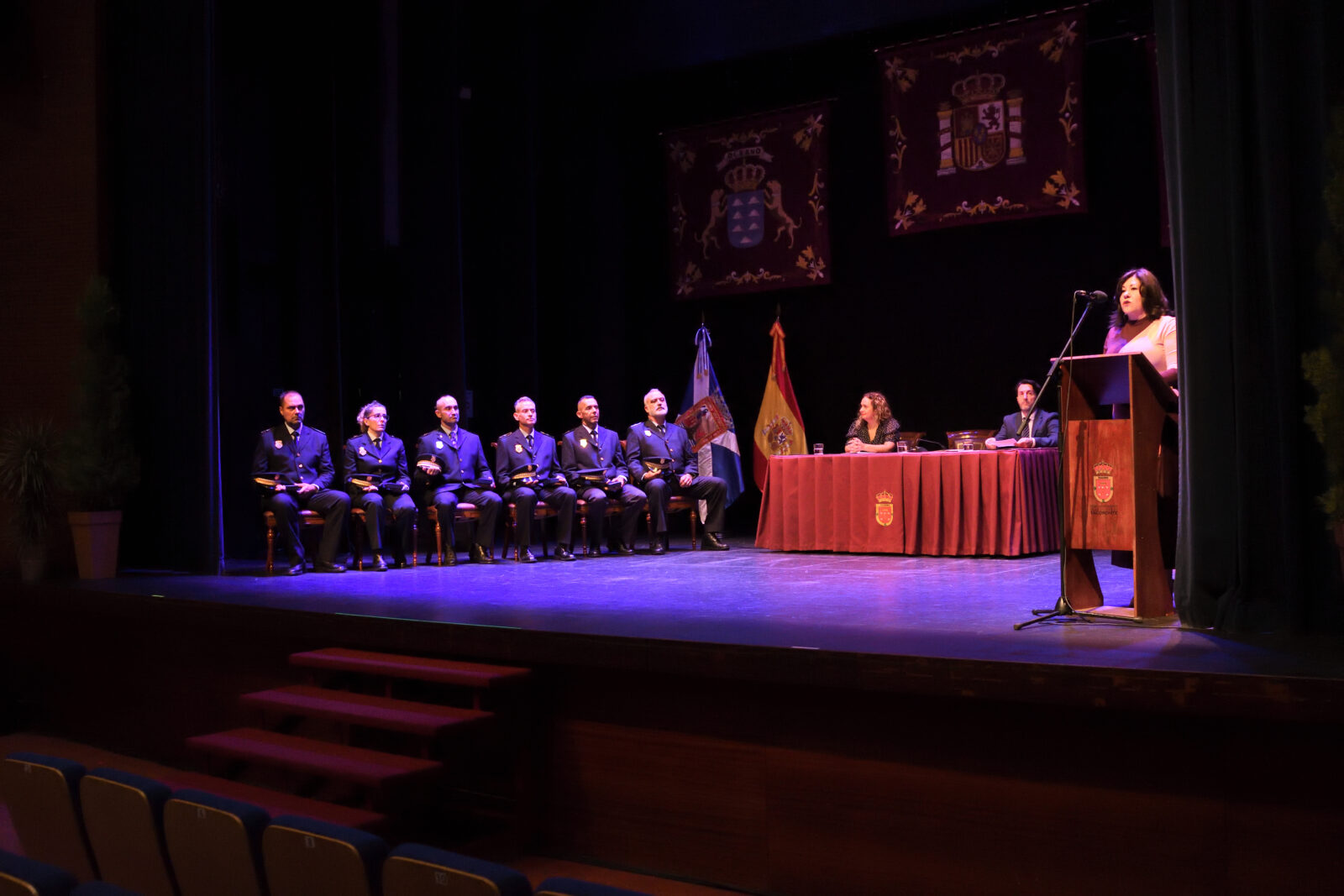 En la recta final del homenaje a los seis agentes de la ciudad, Sandra Izquierdo agradeció públicamente «su dilatada experiencia, entrega sobresaliente y plena vocación de servicio público», al tiempo que reconoció que «el servicio que han venido prestando hasta el momento bien merece un paréntesis para homenajear esos valores de compromiso, cercanía y responsabilidad que les identifica y que a nosotros tanto nos enorgullece». La regidora local recordó que a lo largo de estos años «han construido carrera profesional pero también han sabido dejar huella en muchas de las realidades vividas en el municipio, un trabajo de incuestionable valor, muchas veces silencioso, discreto y en condiciones no siempre favorables».