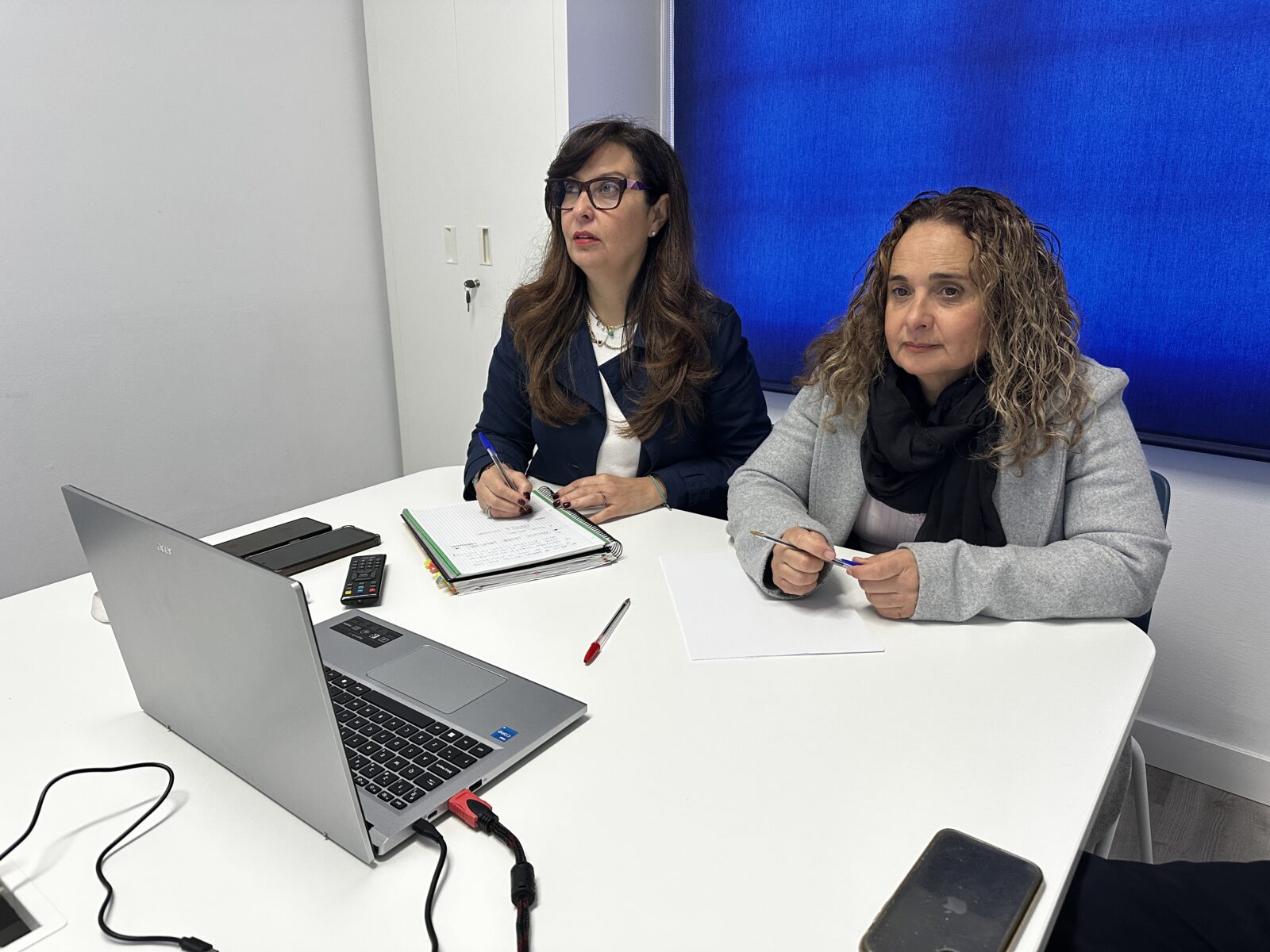 La primera teniente de alcalde y responsable de Protección Civil de Tacoronte, Noemí García; y la concejala de Policía Local y Seguridad Ciudadana, Vanessa Luis-Ravelo, participaron este mediodía en una nueva reunión insular entre el Cabildo de Tenerife y los Ayuntamientos de la Isla, con el fin de conocer la evolución de la borrasca y consensuar las medidas de desescalada que se irán activando a lo largo de los próximos días.