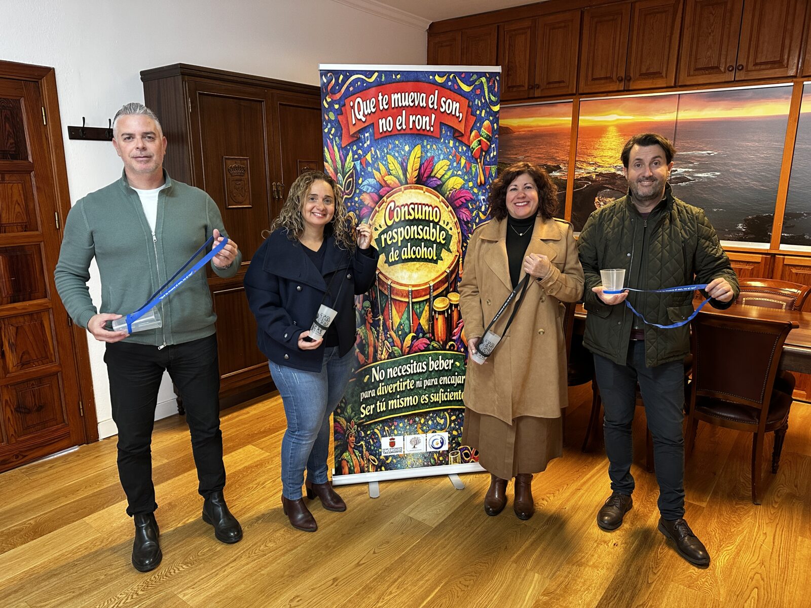 Junto a la alcaldesa Sandra Izquierdo, y los tenientes de alcalde, Noemí García y José Caro, se presentaron las principales líneas de actuación de la campaña «¡Que te mueva el son, no el ron!», que durante los próximos días se hará visible en los diferentes eventos y puntos de consumo en el entorno de La Estación. Dirigida a todos los públicos, especialmente a los más jóvenes, esta segunda edición consecutiva subraya la importancia de vivir el carnaval «sin el consumo de alcohol o haciéndolo de manera responsable». Para ello y con el respaldo de la Concejalía de Educación, liderada por Raquel Torres, la ilustración principal de este año destaca un mensaje claro: «No necesitas beber para divertirte ni para encajar: ser tú mismo es suficiente».