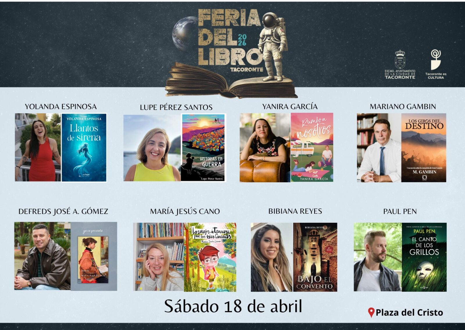 A lo largo de todo el fin de semana, la Asociación Cultural Canaria de Escritores/as ocupará un lugar protagonista, gracias a la presencia de un nutrido grupo de escritores, poetas y creadores miembros de esta organización, presentes en la plaza para firmar y compartir sus obras. La regidora local subraya la «oportunidad única» que vive Tacoronte cada año para poner en valor la importancia de la lectura y las letras en la vida social y cultural de la ciudadanía, «con escenarios como el que nos brinda la propia Feria del Libro, un punto de conexión entre generaciones, autores, lectores y librerías capaz de acercar la literatura de forma accesible, visibilizando el talento local y transformando nuestra plaza en un lugar de conocimiento y de promoción de la cultura», apunta. El acceso a todos los actos programados será gratuito, aunque para controlar el aforo de las salas en la Casa de la Cultura y el Auditorio Capitol será necesaria una inscripción previa.