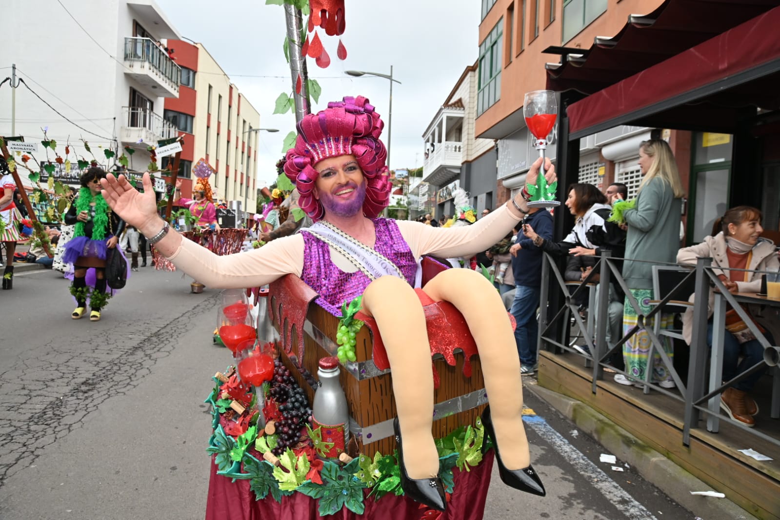 El espectáculo de este año volvió a contar con la participación de una amplia representación de la Corporación municipal, encabezada por la alcaldesa Sandra Izquierdo; la responsable de Fiestas, y la concejala de Mayores y Seguridad Ciudadana, Vanessa Luis-Ravelo. La familia de Miss Mosto 2026, liderada por el titular del cetro de la edición, José Nicolás Pérez, fue una de las grandes protagonistas del día. A lo largo y ancho del trazado por la Carretera General del Norte desfilaron cientos de mascaritas ataviadas con creativos diseños, individuales y grupales, en un entorno custodiado por más de una veintena de efectivos de la Policía Local y un amplio equipo de voluntarios de Protección Civil de Tacoronte.