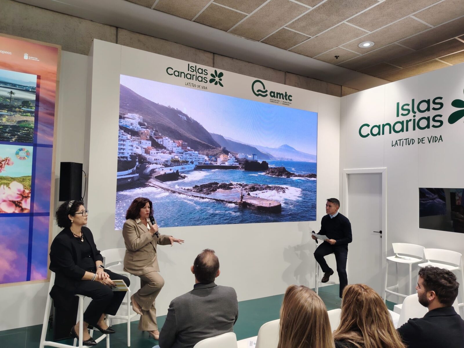 El Área de Turismo del Ayuntamiento de Tacoronte presentó este jueves en FITUR 2026 la estrategia turística de la ciudad tinerfeña para este año, con el objetivo de visibilizar y poner en valor las principales bondades y atractivos que ofrece el municipio y que lo diferencian como destino estrechamente vinculado al patrimonio religioso y la cultura. El acto informativo ante los medios de comunicación se desarrolló en el stand de la Asociación de Municipios Turísticos de Canarias (AMTC), con la presencia de la alcaldesa Sandra Izquierdo, y la concejala responsable de Turismo, Candelaria Regalado.