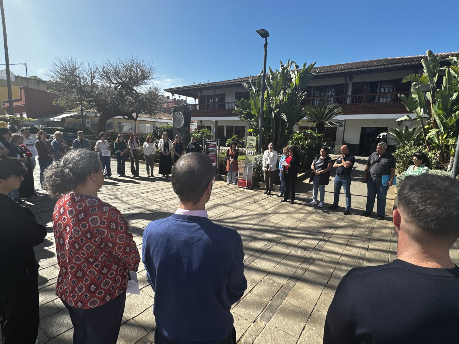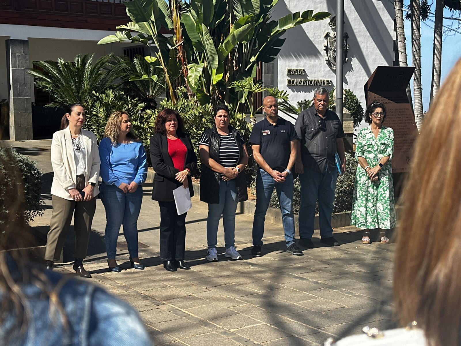 🗣️ La alcaldesa Sandra Izquierdo; acompañada por la primera teniente de alcalde, Noemí García; la concejala de Igualdad, Vanessa Luis-Ravelo, entre otros/as integrantes de la Corporación municipal, y por una amplia representación de la plantilla de trabajadores/as municipales, encabezó este mediodía una nueva concentración silenciosa en los exteriores del Ayuntamiento, con el fin de condenar y rechazar la violencia machista y sus consecuencias deleznables. La regidora local destacó «la profunda indignación del pueblo tacorontero ante esta lacra social que seguimos sufriendo», al tiempo que trasladó el cariño y apoyo de la ciudad a las familias y amistades de las víctimas.